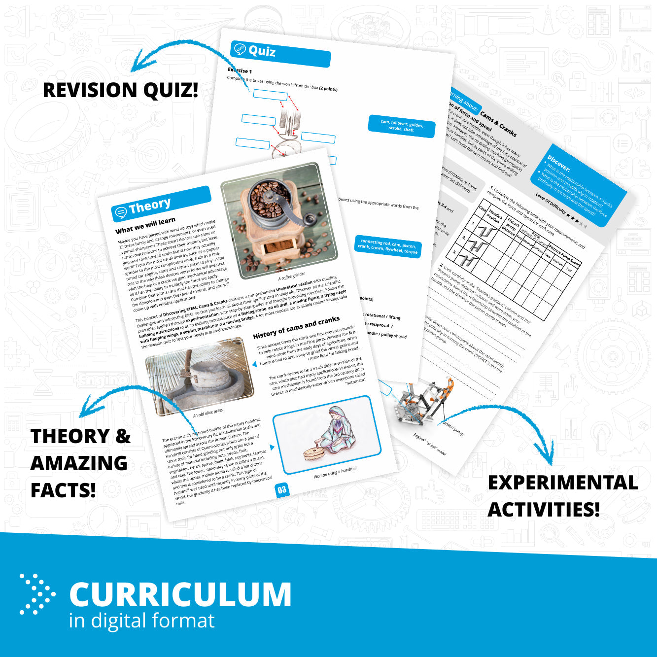 Score depends on amount of STEM/STEAM theory Even though theory learning is often limited to a sterile, mechanical memorization of textbooks, with ® ENGINO kids are engaged through colorful content enriched with interesting facts about the underlying technology which drives the models of each set.