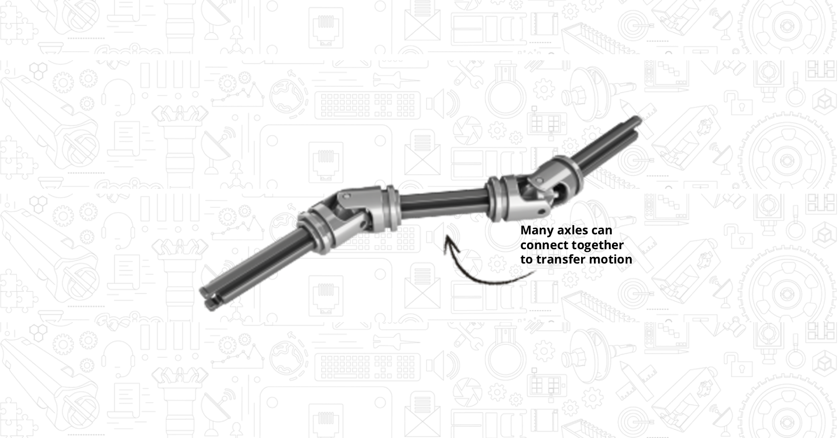 Power transition can be achieved by using single pieces of axles or shafts. But when there is a need to reach longer distances, a single axle is not enough. The system includes axle connectors that can extend an axle to any length needed, simply by joining the axles together with snap-fit secure action. In addition to straight connectors, the ENGINO® system has Universal joints which are remarkable when attempting to change the angle of power transfer!