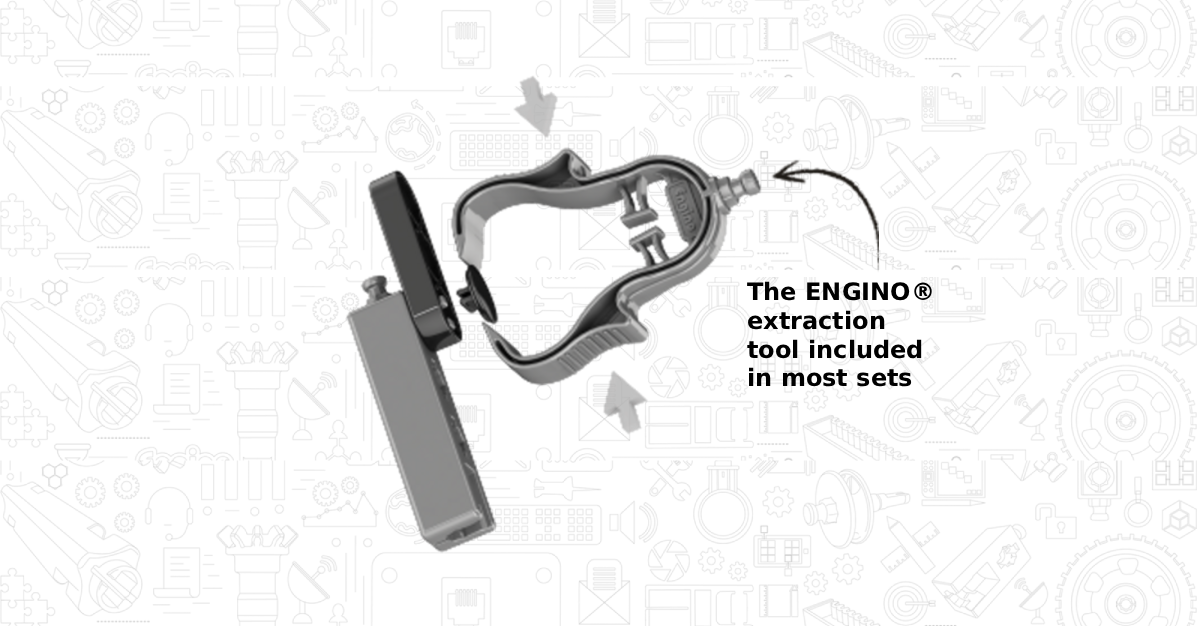 The second purpose of the slotted tip on the axles is what makes it a multi-purpose tool! A “lock-pin” can be inserted inside the slot and once it snaps in place, it can hold one part securely on the other, like a fastener. By attempting to pull the parts apart, the “lock-pin” wings inside the slot, restrict yhe axle's deflection and force the parts to remain connected. But, as easily as this pin is inserted, it is as easily removed! Just pull the pin out first, either by using fingers or with the innovative extraction tool, and parts are unlocked and released.