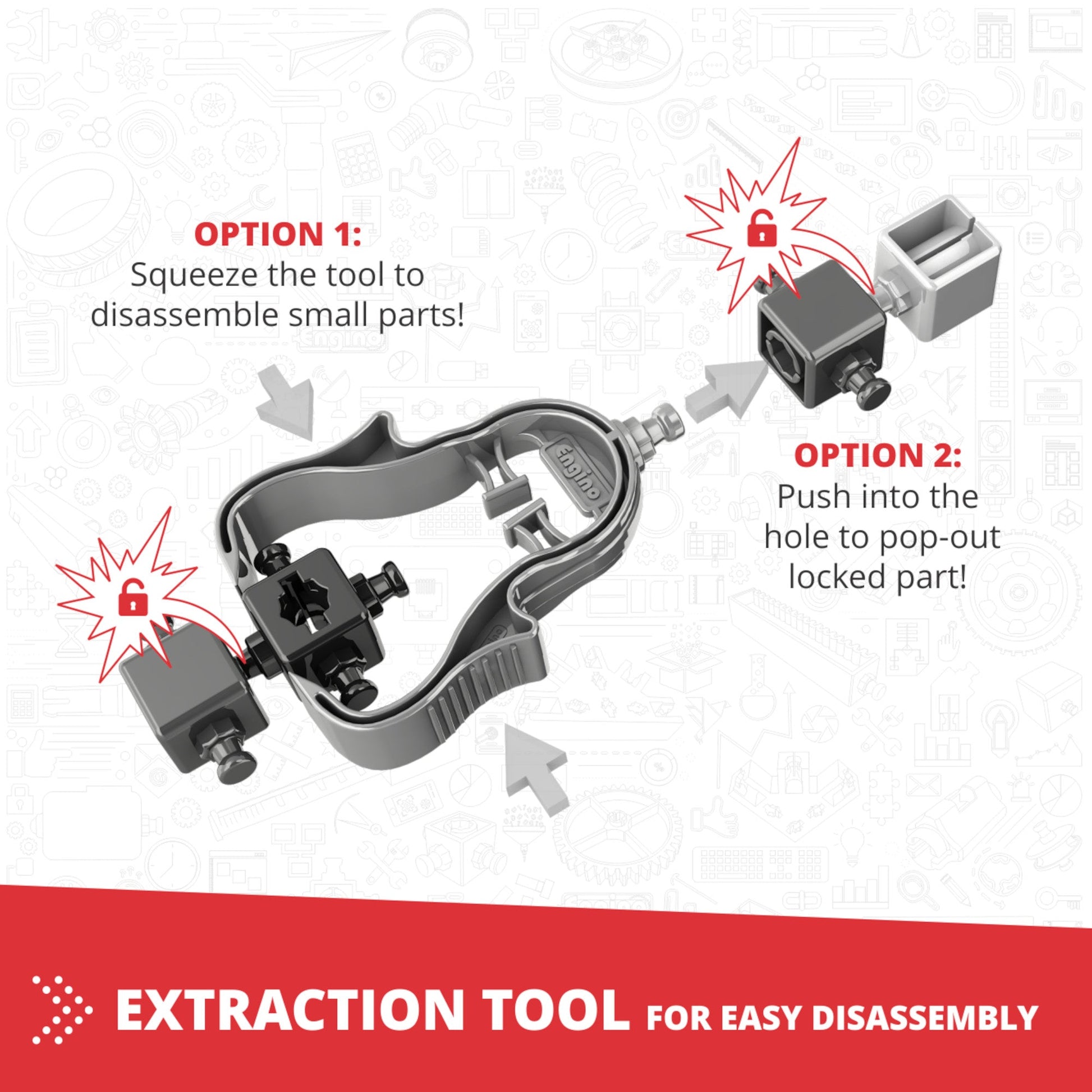 • Double-action extraction tool that enables quick & easy disassembly of small parts, helping kids iterate-and-improve builds.