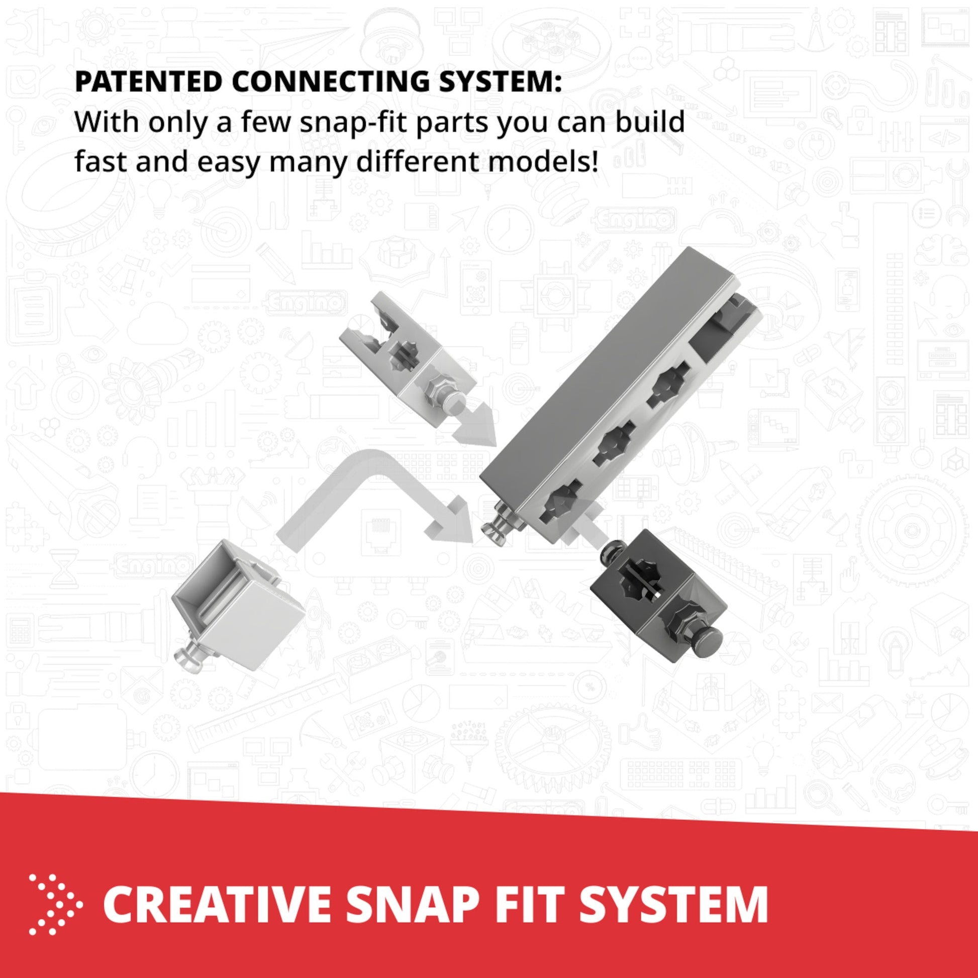 Uses Engino’s patented snap-fit system for frustration-free connections, with printed instructions for 1 model and interactive 3D kidCAD app guidance for all models.