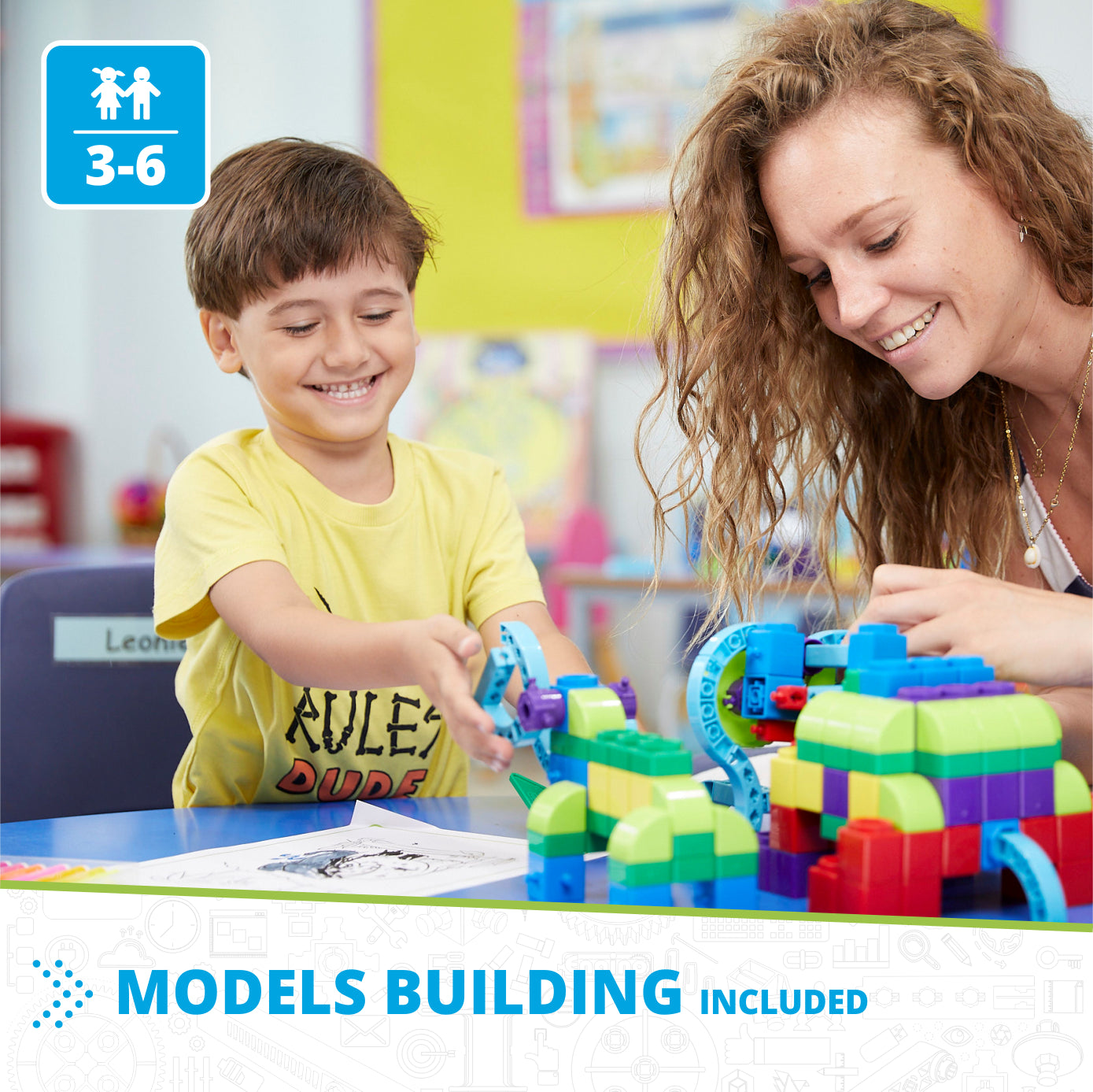 Score depends on the number of parts and connecting points The ENGINO building system has a patented design of the parts which allows connectivity of up to 6 sides simultaneously, while the unique extendable components lead to builds that were previously unthinkable, unleashing kids' creativity and imagination. Sets include printed step-by-step instructions for the main models, but also online through our kidCAD™ interactive app.