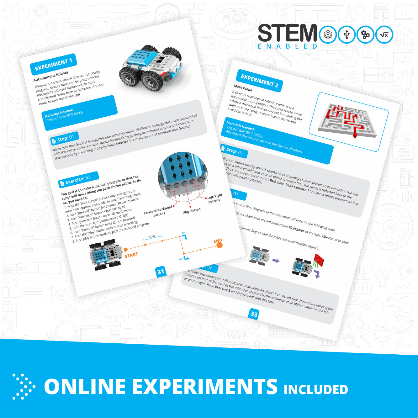 • STEM learning resources: Includes structured theory, quizzes, experiments, and open-ended projects so kids don’t just build; they test, analyze, and apply engineering and coding concepts step by step.