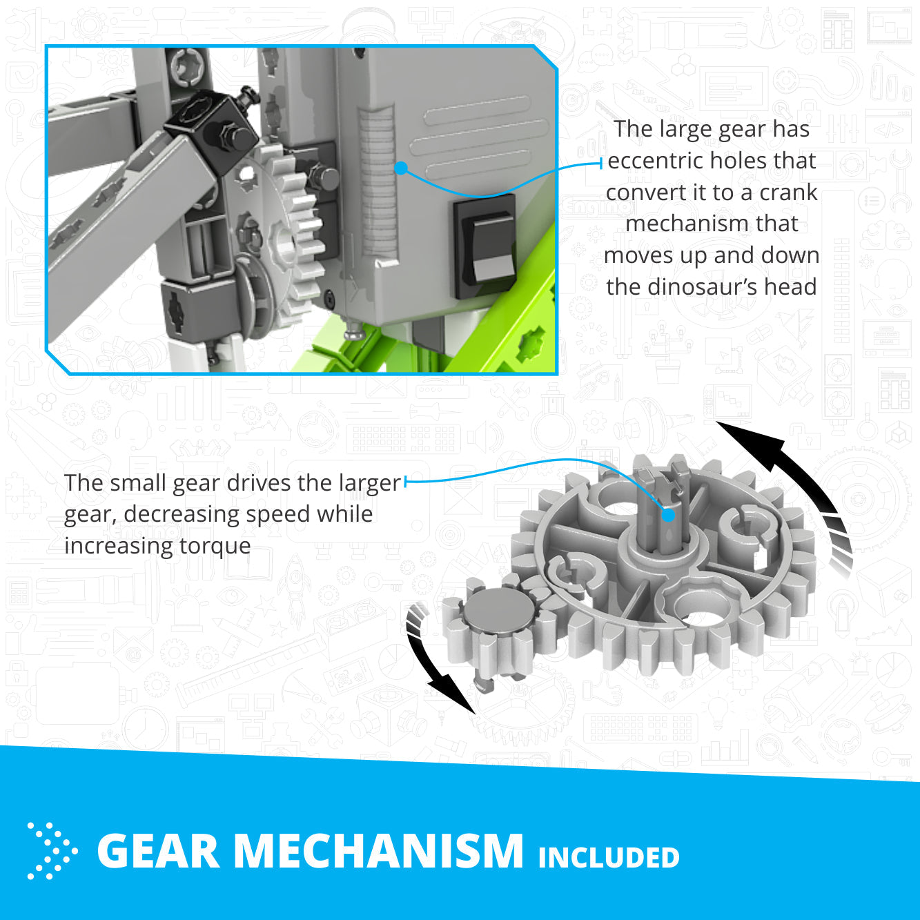 • Dinosaur: Bring prehistoric engineering to life with moving parts.