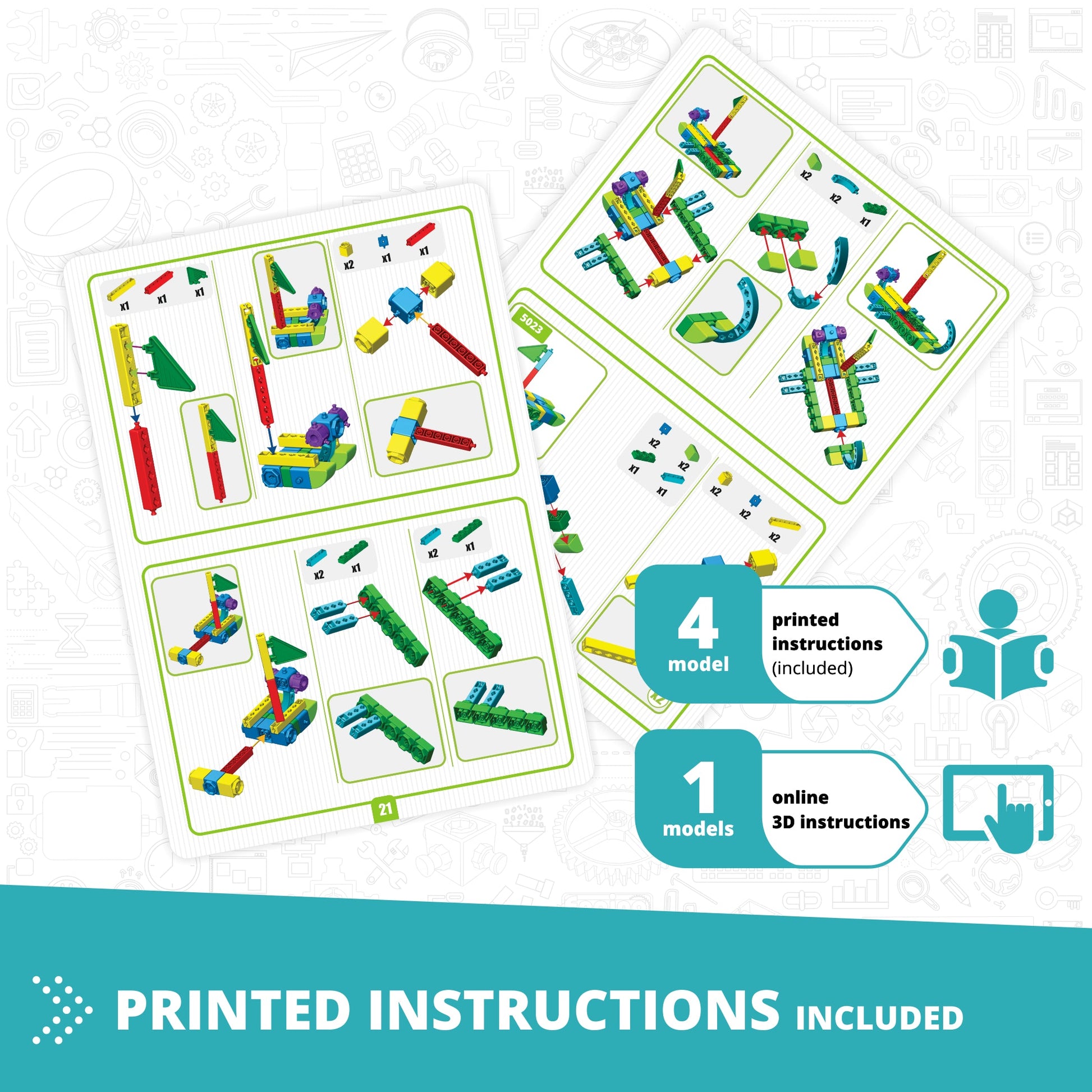 • Printed instructions for 4 models: age-appropriate steps to confidently build one model at a time.