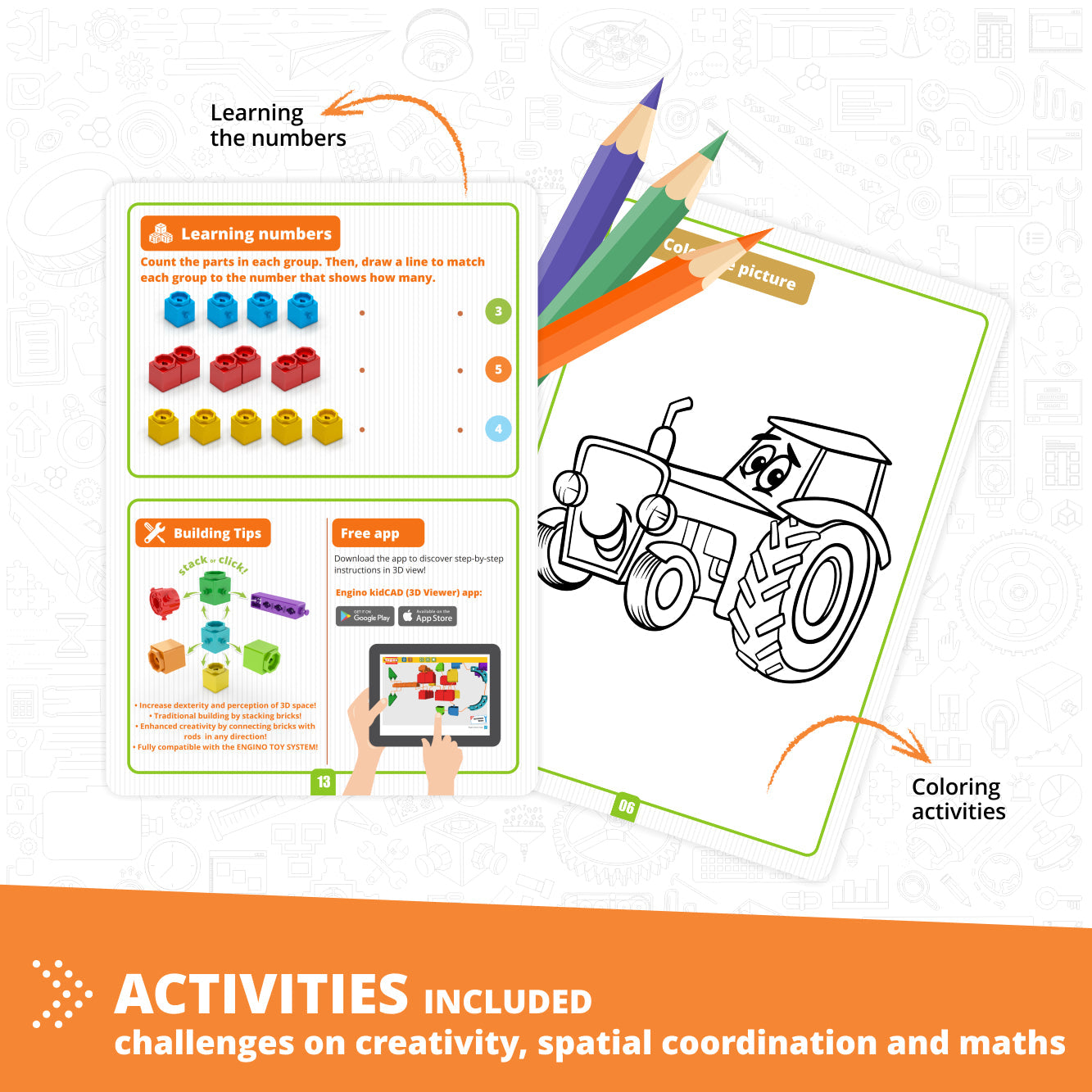 Score depends on number and complexity of exercises By solving fun exercises and quizzes, which are included in the educational ® booklet of most ENGINO sets, also available online, kids will be able to challenge their newly acquired knowledge and test what they have learnt!