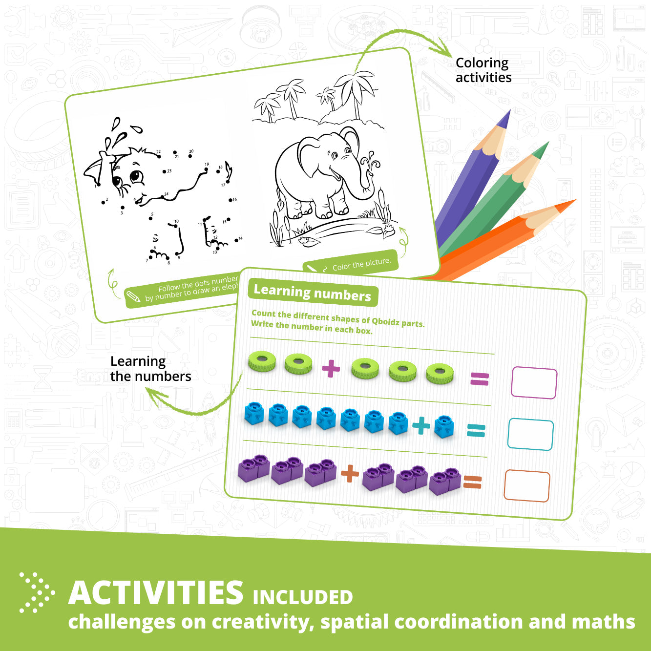 The included booklet blends fun and learning with illustrated instructions, animal facts, and themed activities such as coloring, connect-the-dots, and number challenges- perfect for nurturing curiosity, focus, and creativity.
