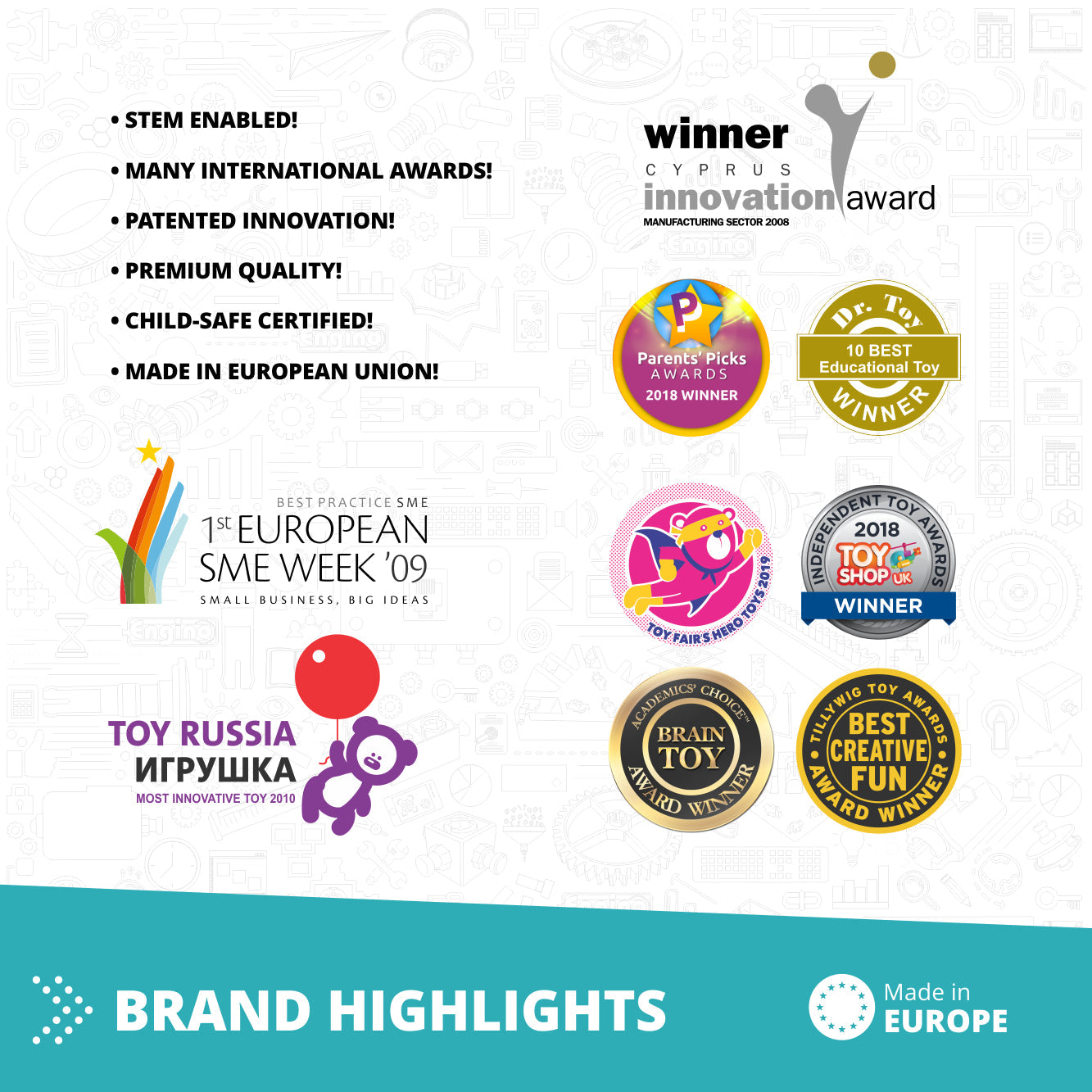 ENGINO pays much attention to the manufacturing and distribution of ecological products. All products are environmentally friendly because they can be recycled. ENGINO offers solar products where the motor is powered by solar panel instead of batteries. We have also launched the award winning series of Eco Builds which is based on a new innovation of ENGINO toy system connecting sustainable beech wood with plastic parts. The use of wood reduces significantly the plastic parts and leads to more efficient recycling, making this product an environmental friendly solution.