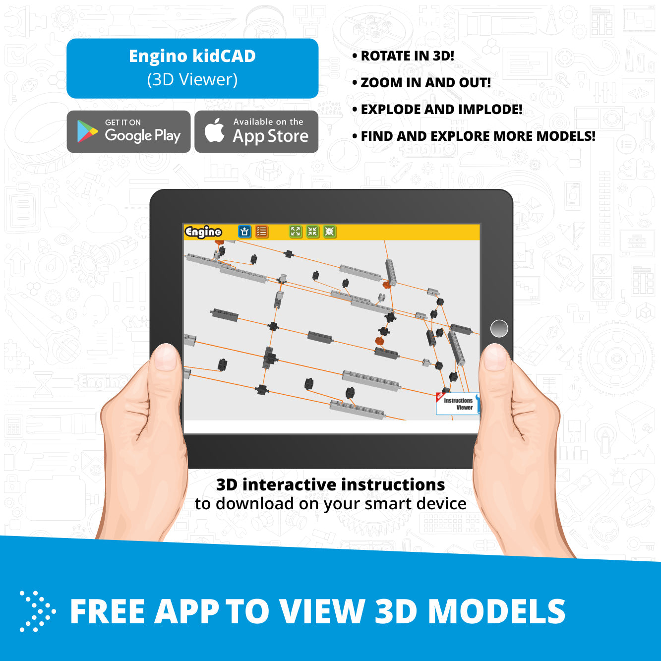 Build 60 working models across the series with printed and online 3D instructions via the kidCAD (3D Viewer) app.