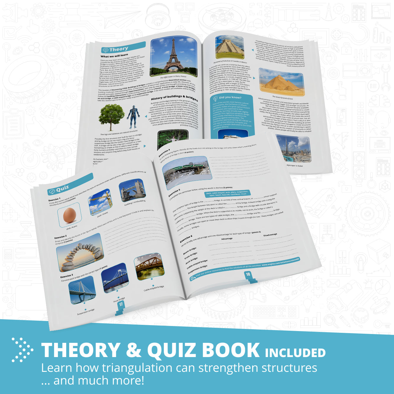 Score depends on amount of STEM/STEAM theory Even though theory learning is often limited to a sterile, mechanical memorization of textbooks, with ® ENGINO kids are engaged through colorful content enriched with interesting facts about the underlying technology which drives the models of each set.