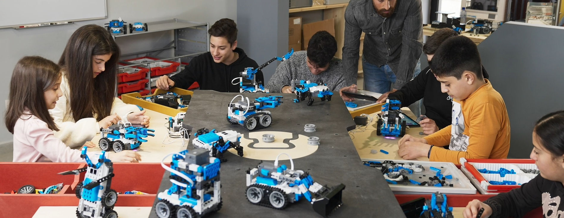 The STEM & Robotics program is designed to help kids gradually develop programming skills from basic to advanced. It combines hands-on learning with play. During the program, kids will build functional ENGINO models, conduct experiments to learn through practical experience, and then create and program their own devices and robots.