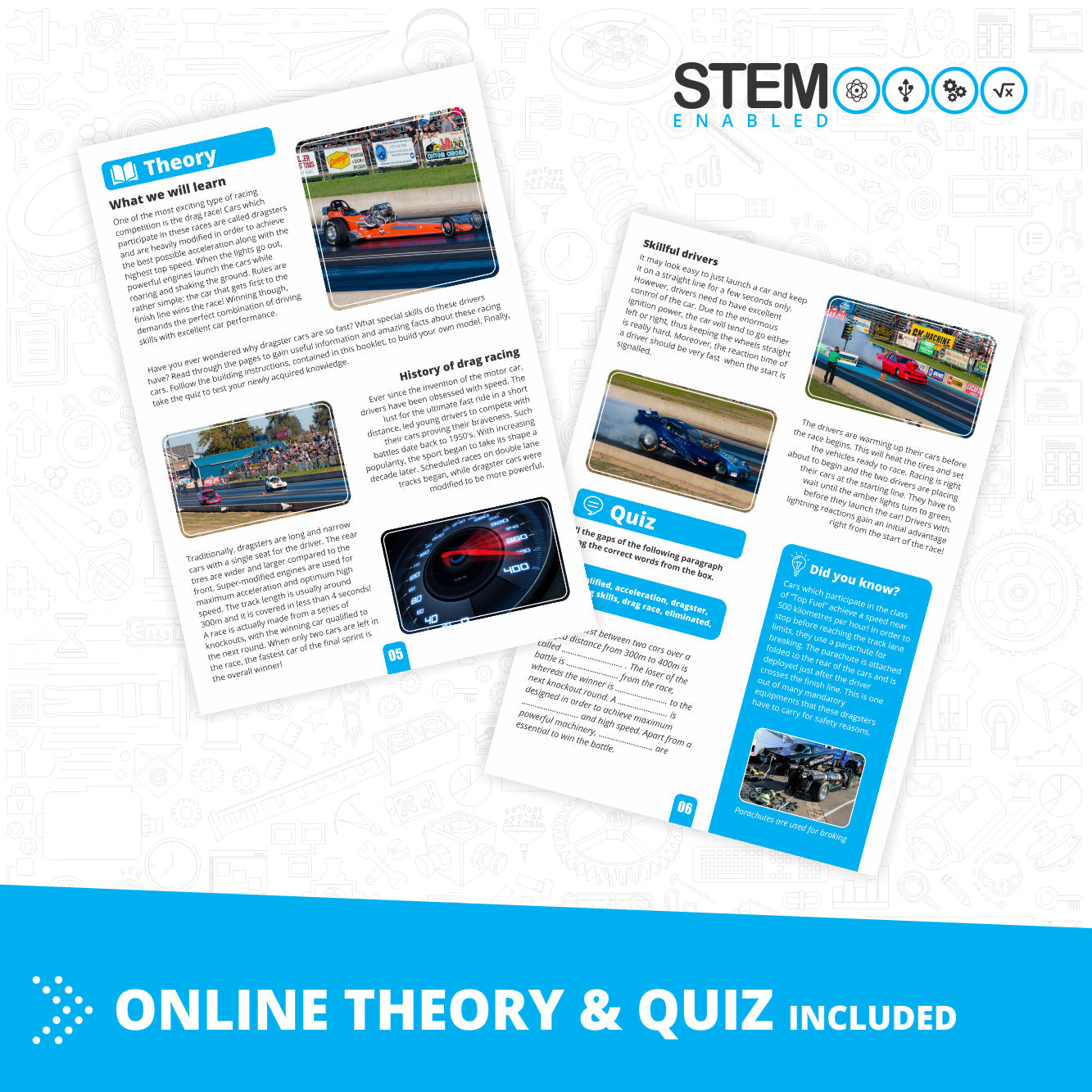 Score depends on amount of STEM/STEAM theory Even though theory learning is often limited to a sterile, mechanical memorization of textbooks, with ® ENGINO kids are engaged through colorful content enriched with interesting facts about the underlying technology which drives the models of each set.