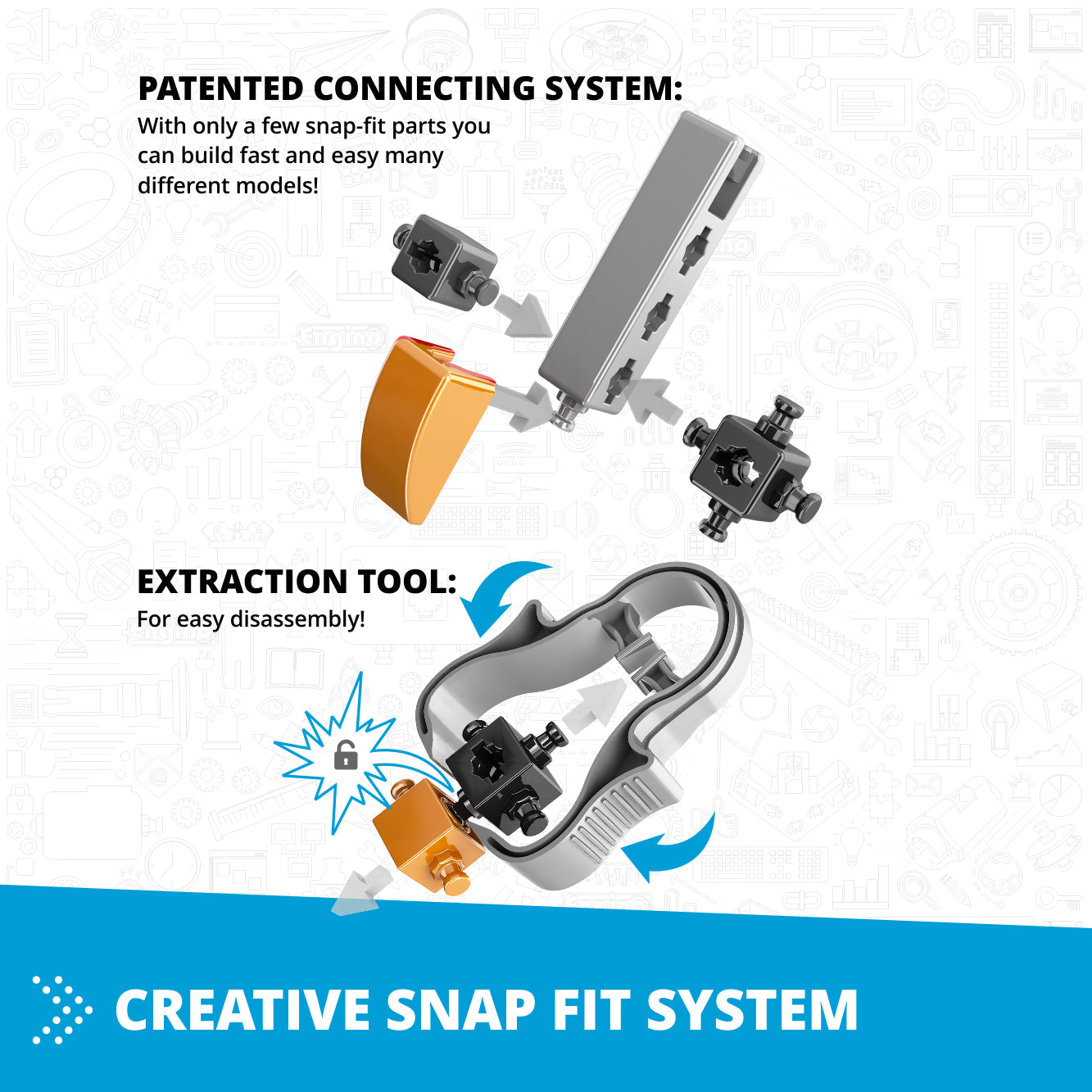 Award-winning snap-fit system: Build 3-90+ models per set.